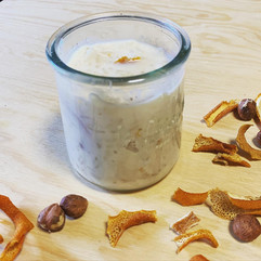 Faire chauffer doucement 500 ml de lait entier avec 50gr de sucre dont 10 de sucre vanillé ou avec une gousse de vanille. Infuser 15 minutes avec un bâton de cannelle, et une pincée de zestes d'orange. (je fais sécher mes zestes d'oranges et citrons BiO et je les garde pour mettre dans plein de plat ou infusion). Retirer les ensuite et ajouter 100 gr de riz rond. Faire cuire doucement 20 bonnes minutes jusqu'à absorption complète. Répartir dans des pots en verre. ( Je recycle mes pots de yaourt La Fermière car je les adore) . Laissez refroidir puis placer au moins 4 heures au frigo. Bonne dégustation